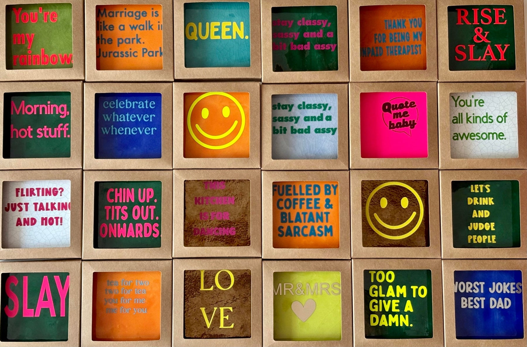 We’re all about turning powerful quotes into cheeky ceramic gems, 10x10cm bursts of wit, sass, and soul that bring serious personality to your home, office, or wherever you need a pick-me-up.