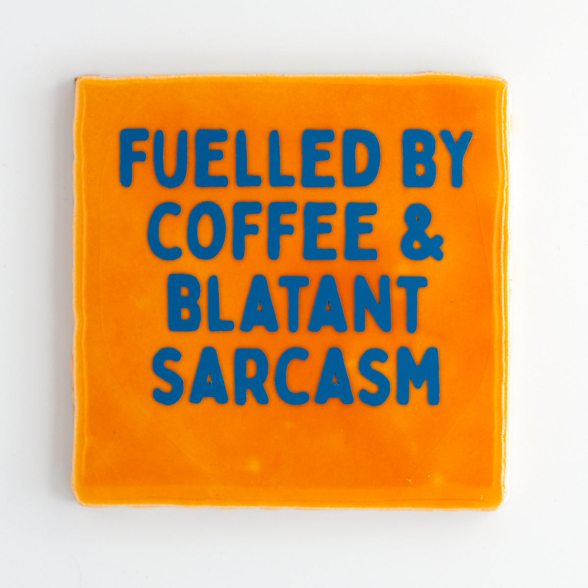 - The ceramic quote tiles are roughly 10 by 10 cm and have a glazed shiny finish.