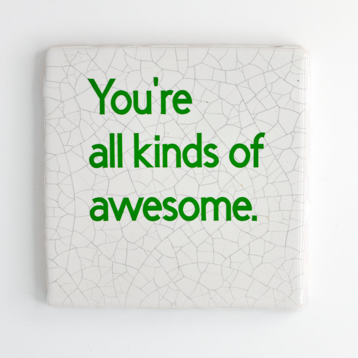 - The ceramic quote tiles are roughly 10 by 10 cm and have a glazed shiny finish.